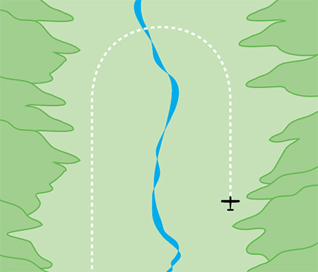 Positioning to one side of the valley leaves maximum room to turn. Always use the maximum room available in case a 360-degree holding turn is required.